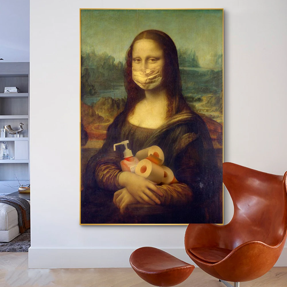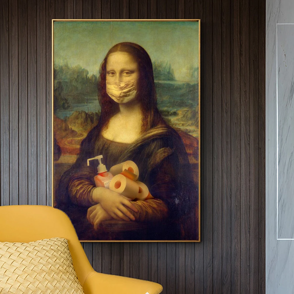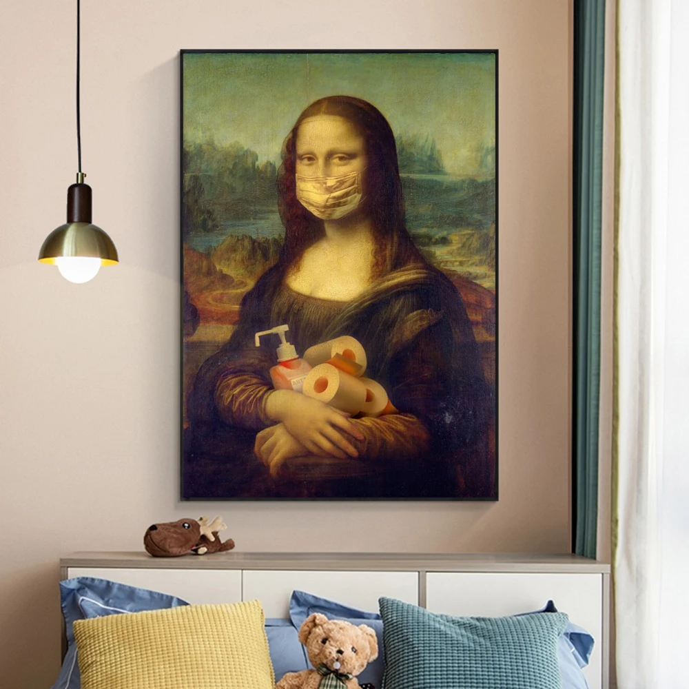 Мона Лиза с рулоном бумаги и геля для душа плакаты и принты на холсте забавная известная картина на стену искусство картина для декора комнаты