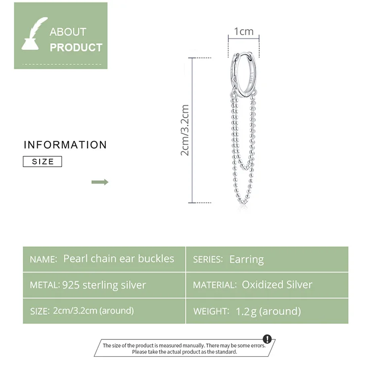 Материал:S925 + окисленное сереброДиаметр ушного кольца: 1,2 см, длина: 2 см/3,2 смОписание:Простое кольцо с цепочкой из бисера, подходит для разных размеров, дизайн с ушной пряжкой, чтобы носить более комфортно.