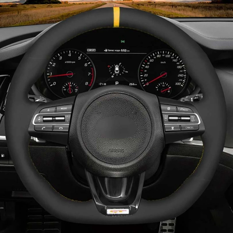 Чехол рулевого колеса автомобиля Мягкий черного цвета из натуральной кожи и замши чехол рулевого колеса автомобиля s Для Киа Стингер 2017 2018 2019 2020