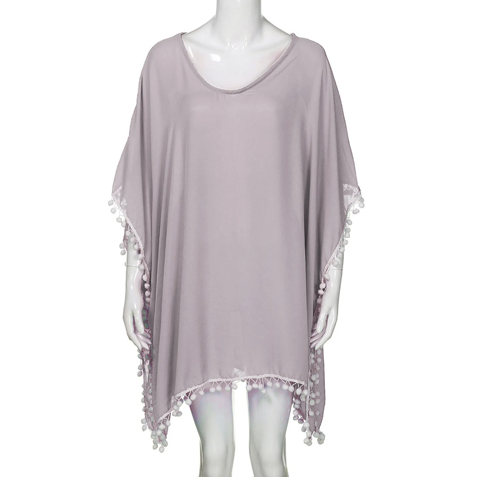 WОмен Шифоновый купальный костюм с кисточками и помпонами, Пляжное свободное бикини, накидка