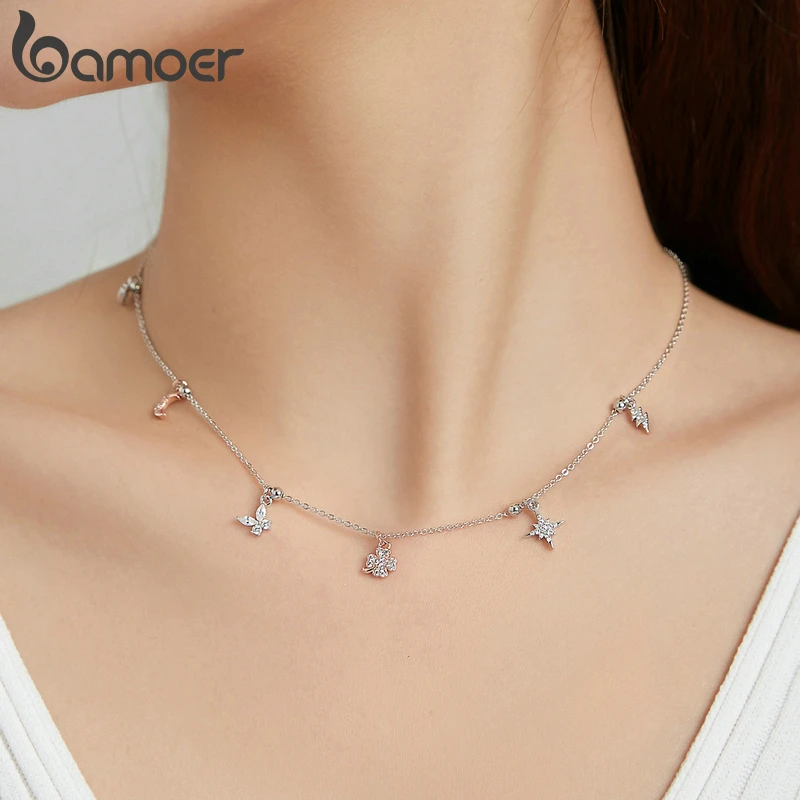 Серебряное ожерелье bamoer с простые бусины, регулируемое ожерелье из серебра 100% 925 пробы, Изящные Ювелирные изделия оригинального дизайна BSN224