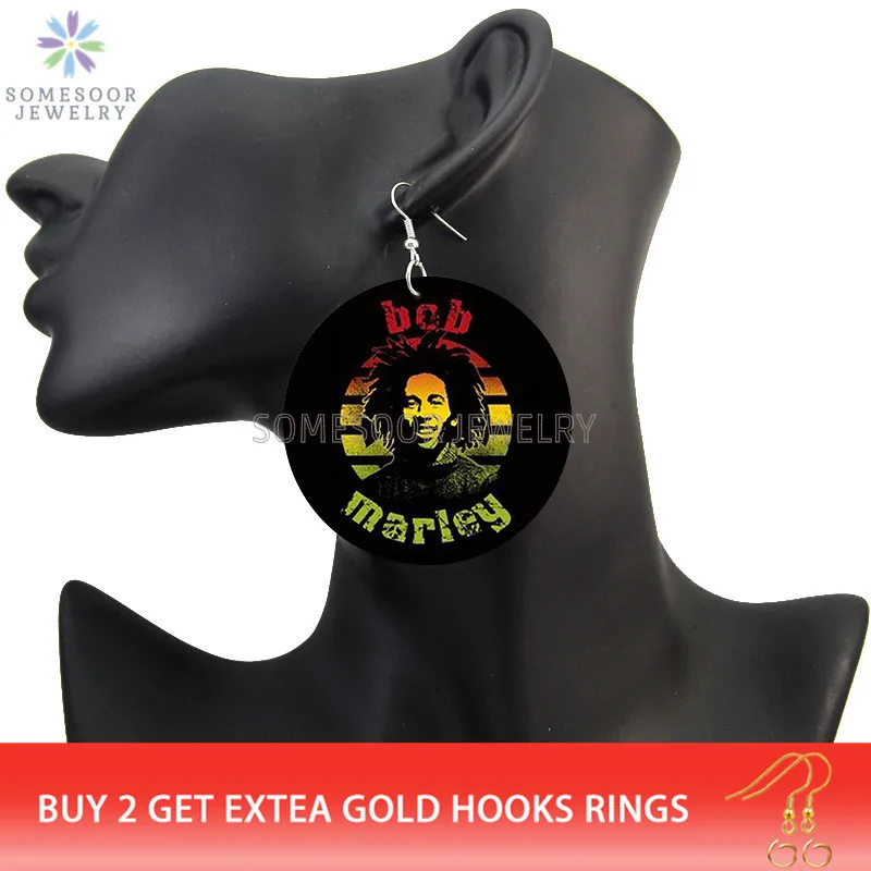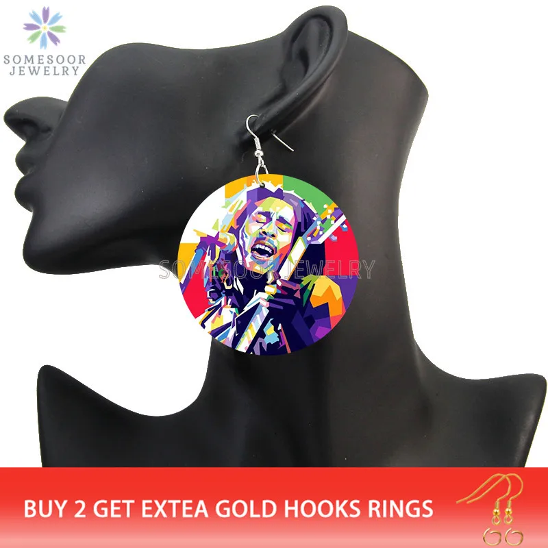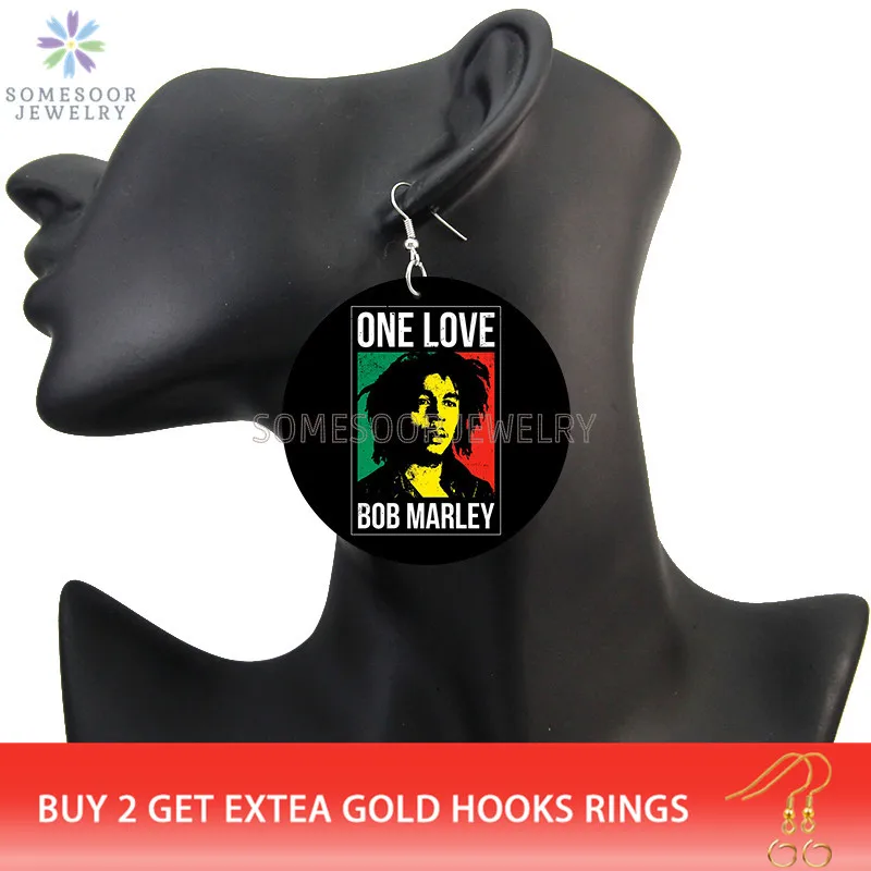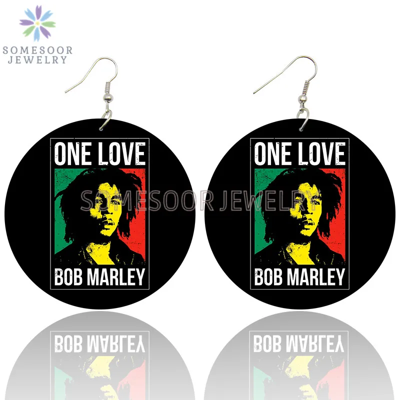 SOMESOOR Miss Bob Marley One Love африканские деревянные висячие серьги, черный герой, рэпер, оригинатор, печатные петли, Висячие петли для женщин, подарок