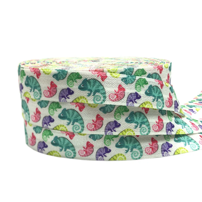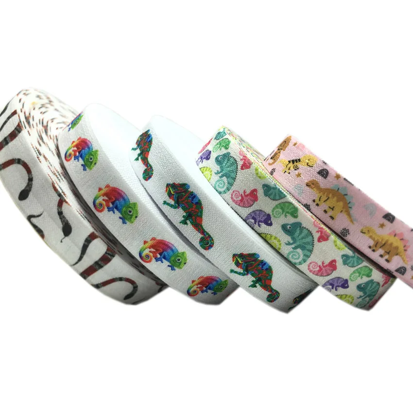 10 ярдов 5/8 "15 мм Красочные динозавры змеи животных печати сгибаются по эластикам