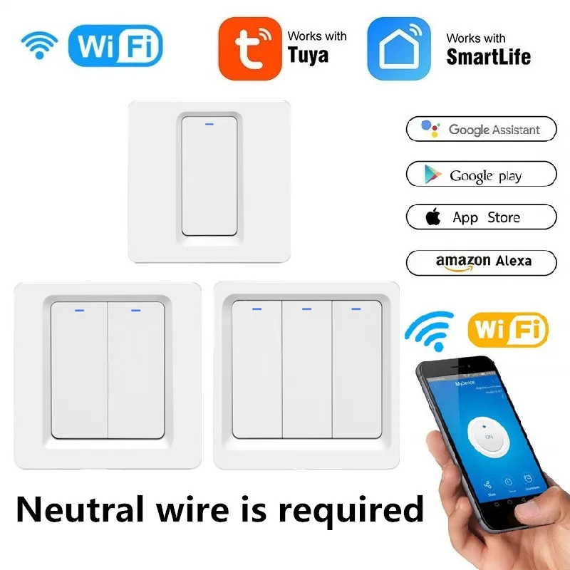 Умный сенсорный выключатель TUYA, Wi-Fi, 123 кнопок, N + L, 220-240 В, стандарт ЕС, домашняя настенная кнопка, работает с Alexa Google Home Assistant