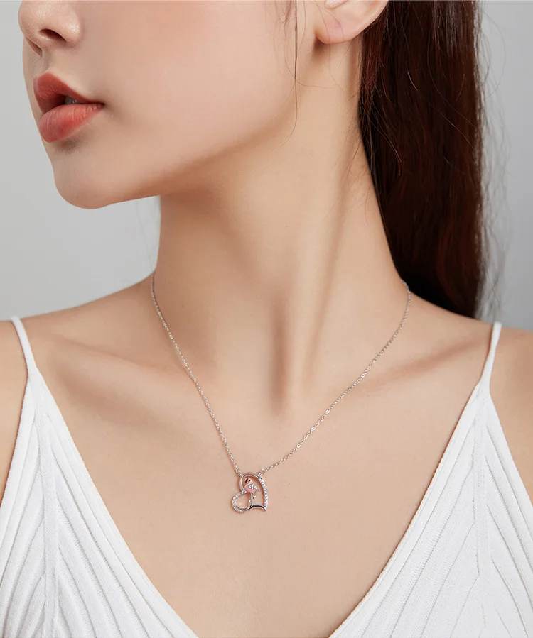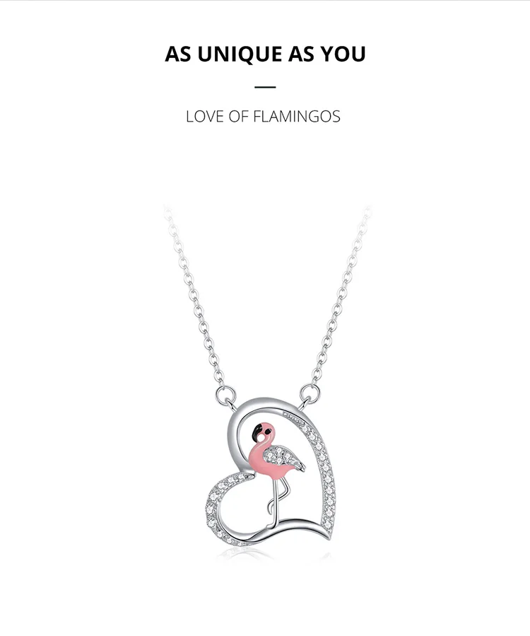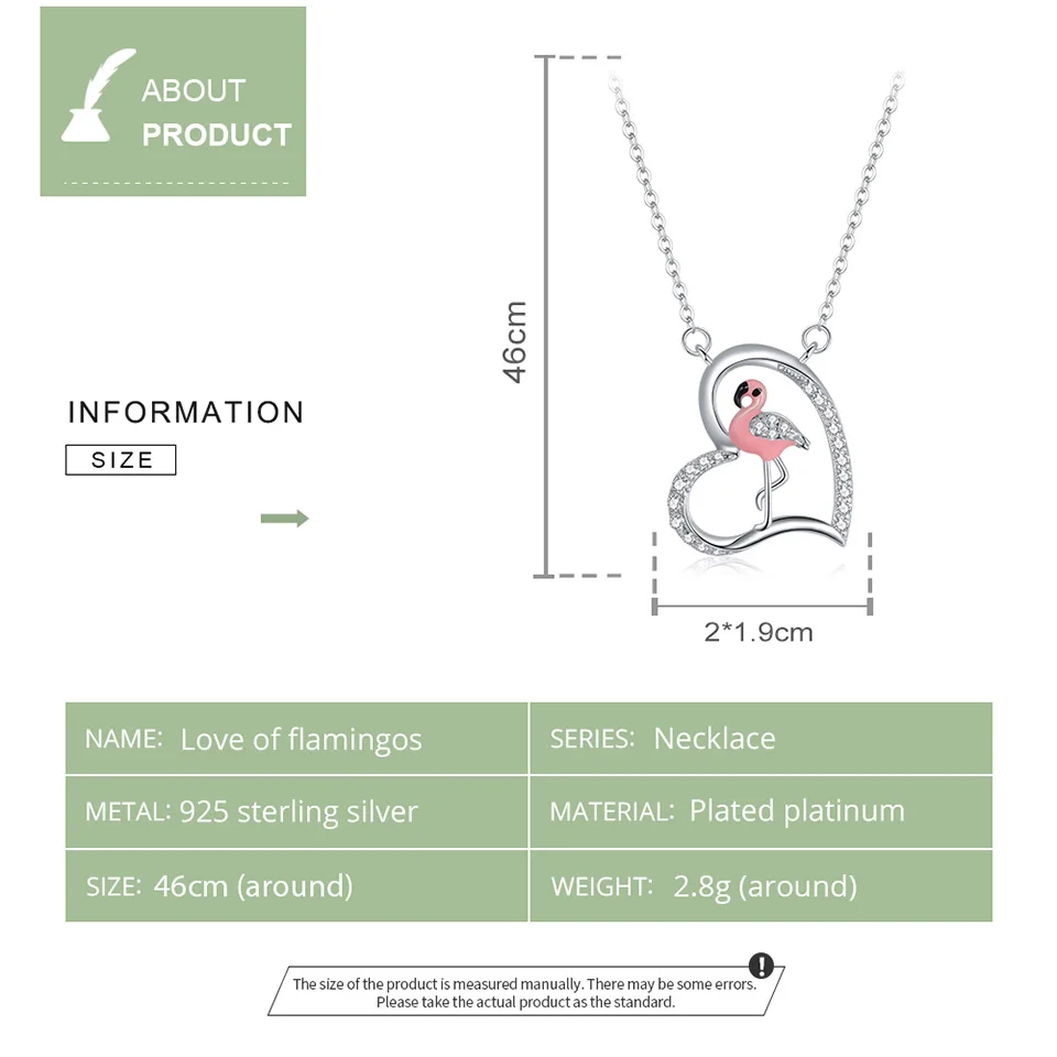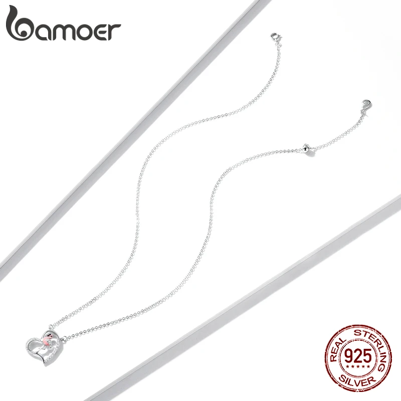 Женское серебряное ожерелье с Фламинго bamoer, из серебра 100% пробы, 925 пробы, с розовым сердцем, в виде животного, BSN223