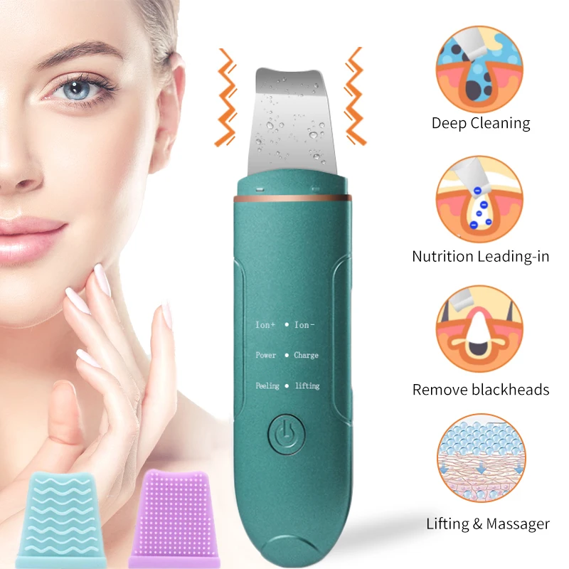 Ультразвуковой скребок для кожи, лопатка для пилинга, акне, очиститель пор, отшелушивающий шпатель, подтягивающий массажер