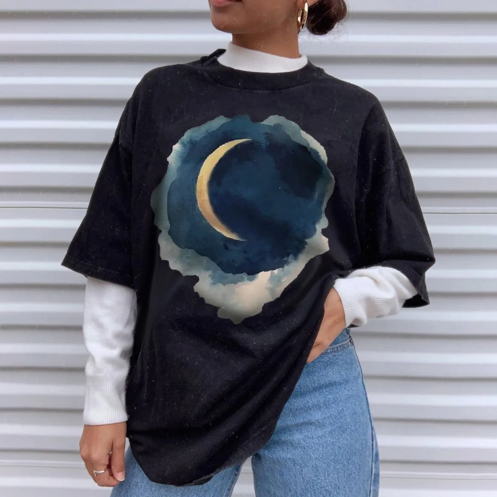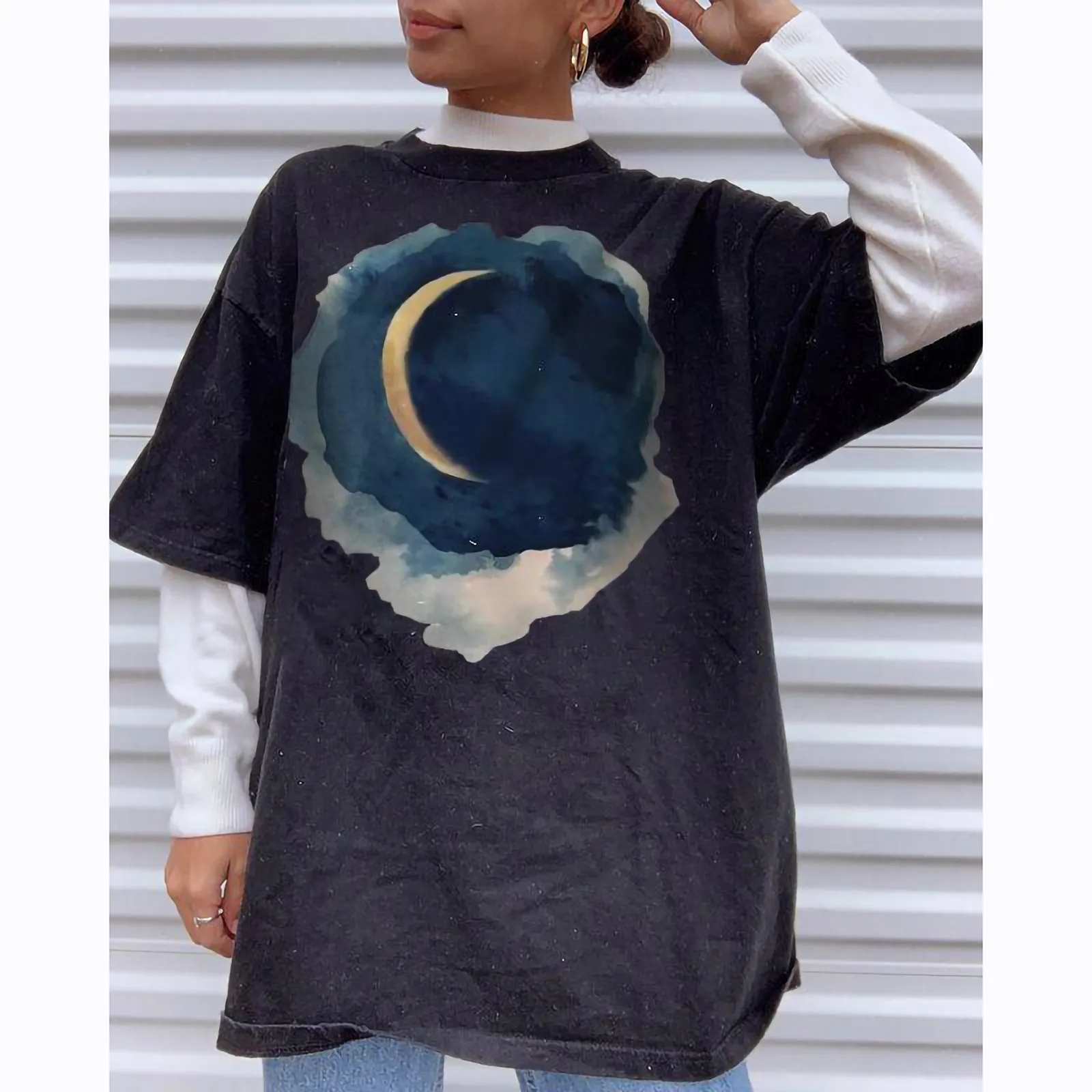 Женская футболка с круглым вырезом, коротким рукавом и принтом Луны