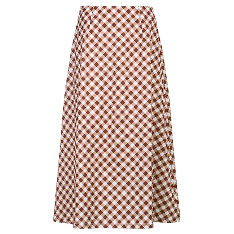 Винтажные коричневые миди-юбки в клетку с высокой талией, 90s, длинная юбка трапециевидной формы с инди-эстетическим принтом, Y2K, уличная одежда для девочек, лето 2021