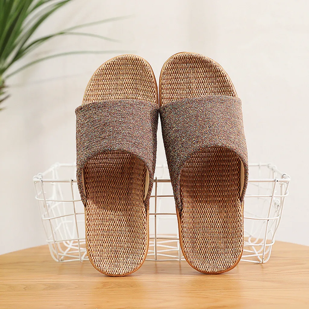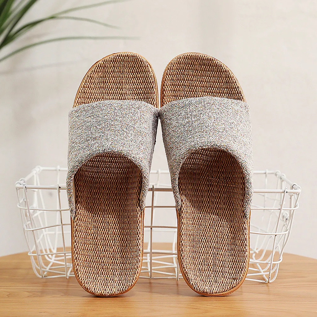 Шлепанцы унисекс из пеньки, повседневные льняные домашние тапочки, без застежки, пляжные сандалии, Прямая поставка
