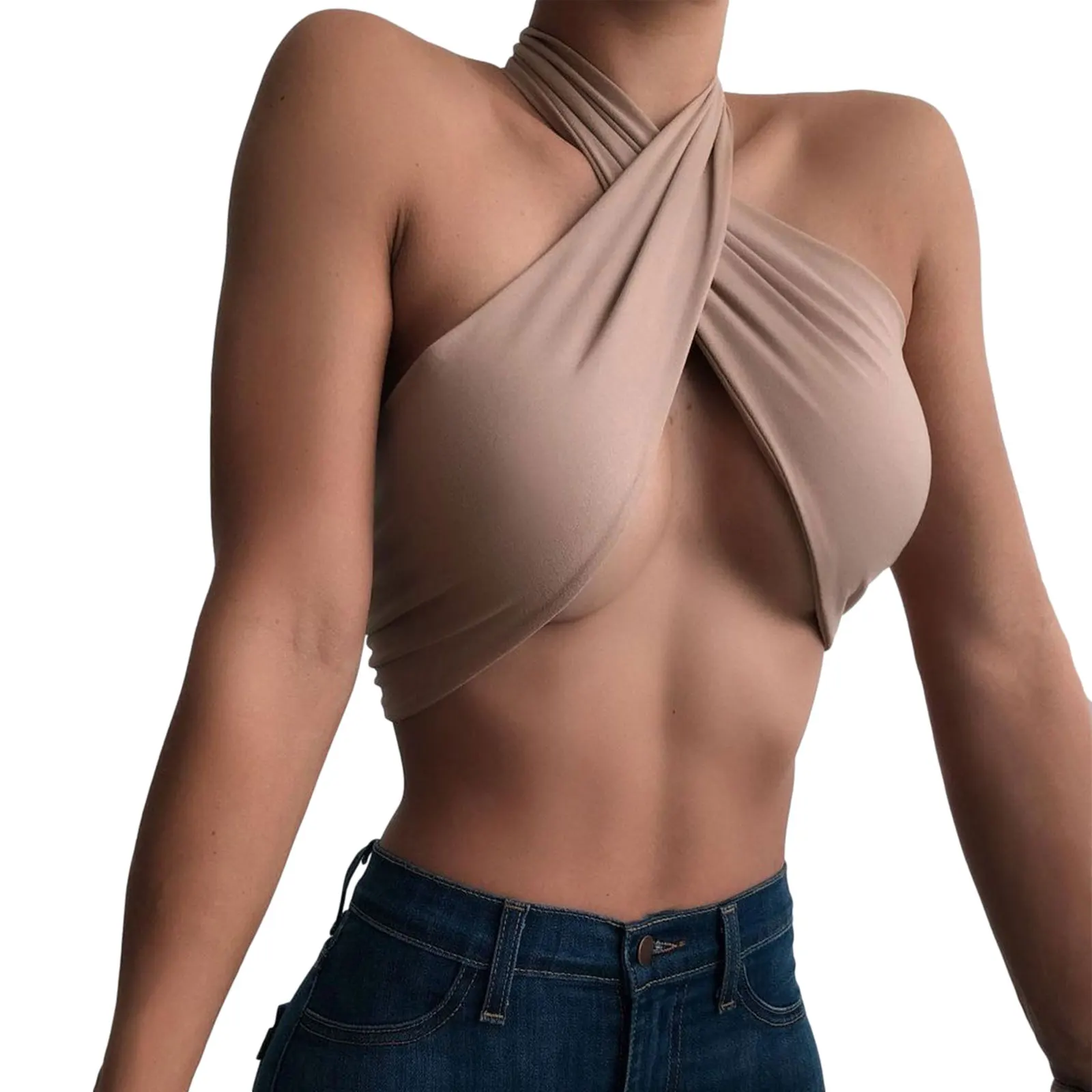 Бандажный топ на бретелях, Женский однотонный бюстье, топы без рукавов, кросс-жилет, короткая одежда для лета