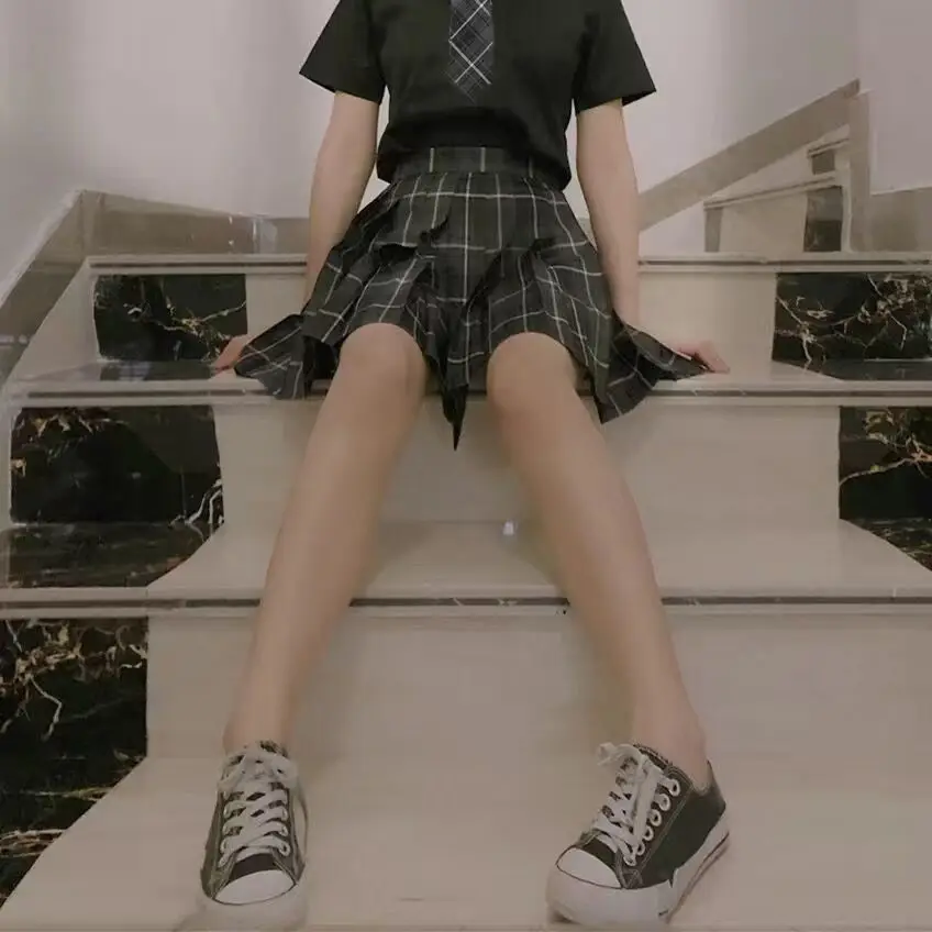 Дымчато-серый длинныекороткие юбки с высокой талией для девочек, плиссированные юбки в клетку, женское платье для школьной формы JK, одежда для студентов