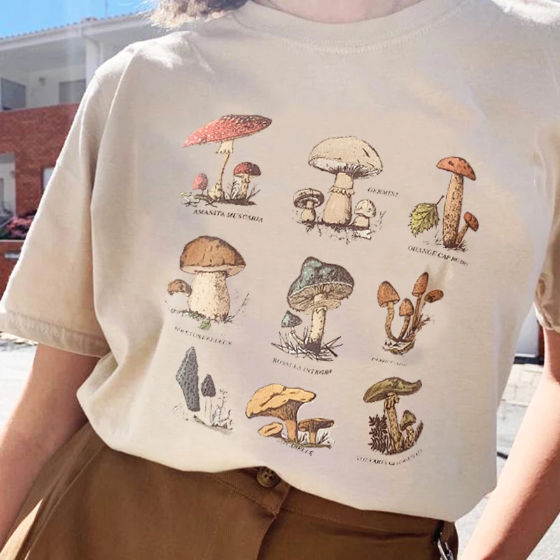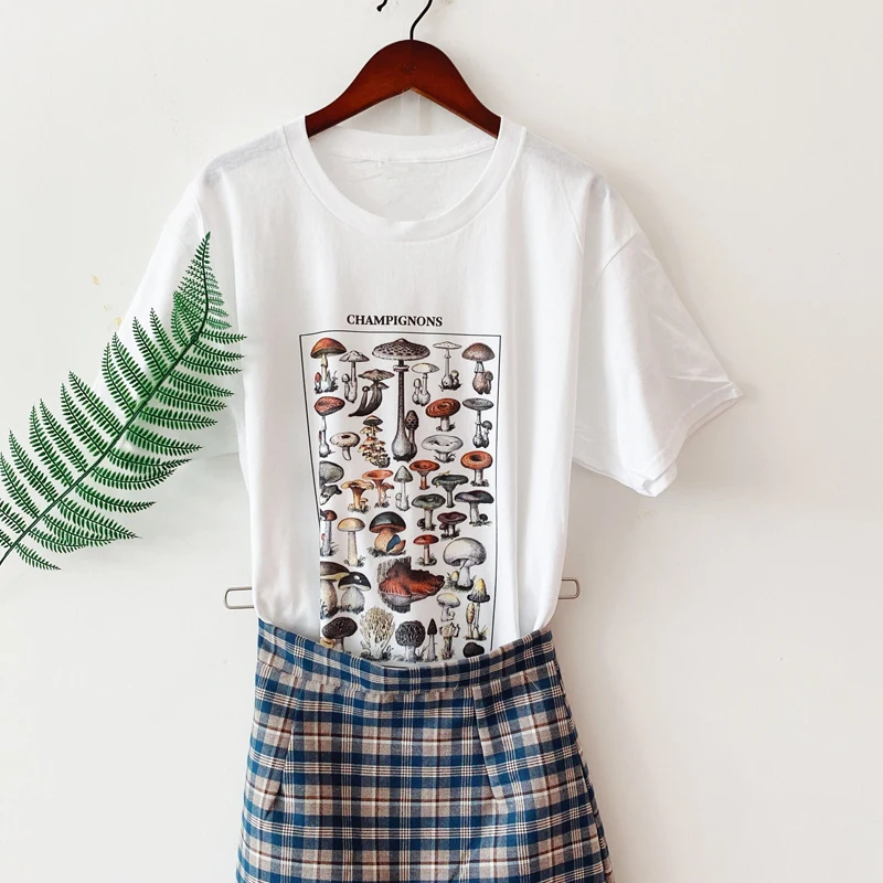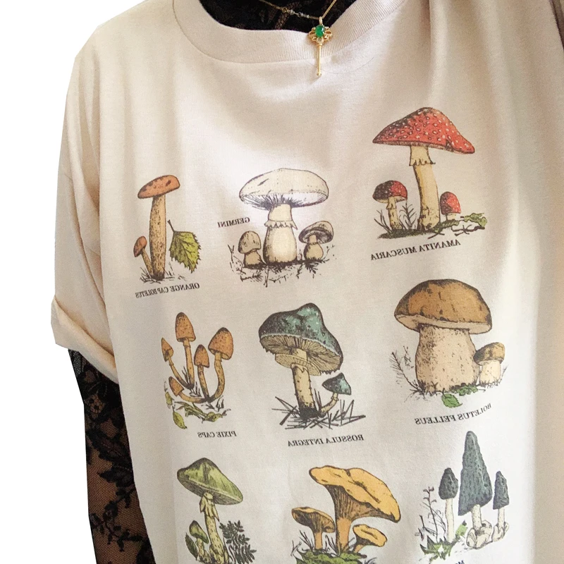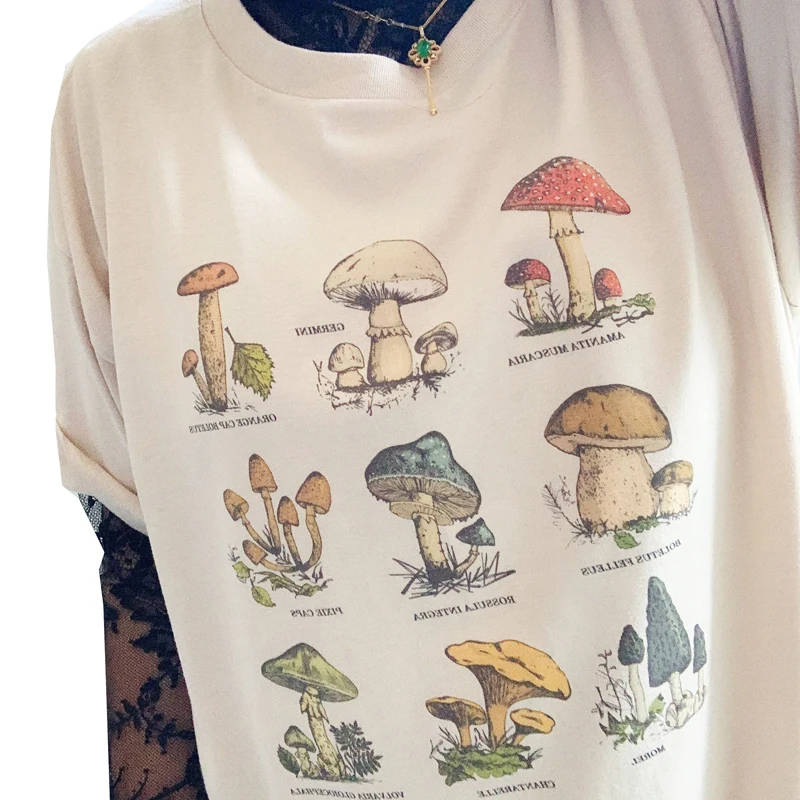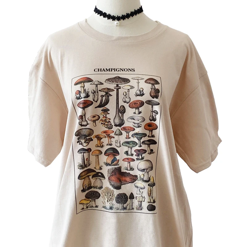 Футболка женская оверсайз с принтом грибов, модный винтажный топ с графическим принтом, в стиле гранж, для девочек, уличная одежда