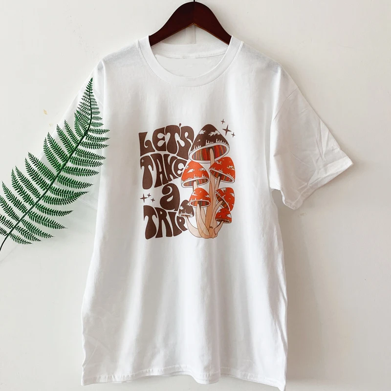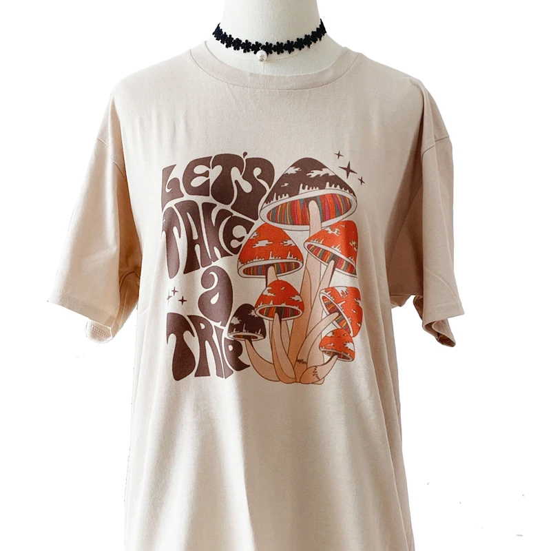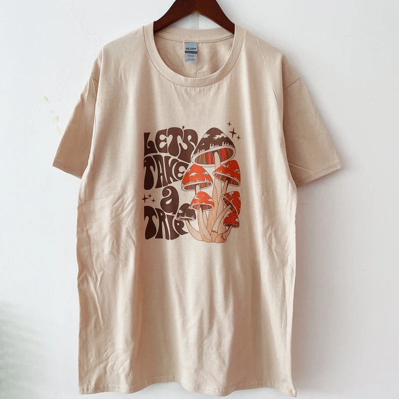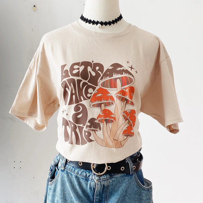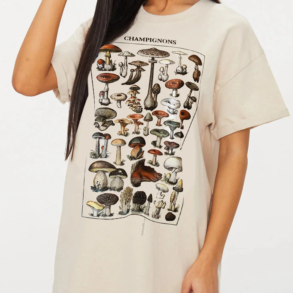 Футболка женская оверсайз с принтом грибов, модный винтажный топ с графическим принтом, в стиле гранж, для девочек, уличная одежда