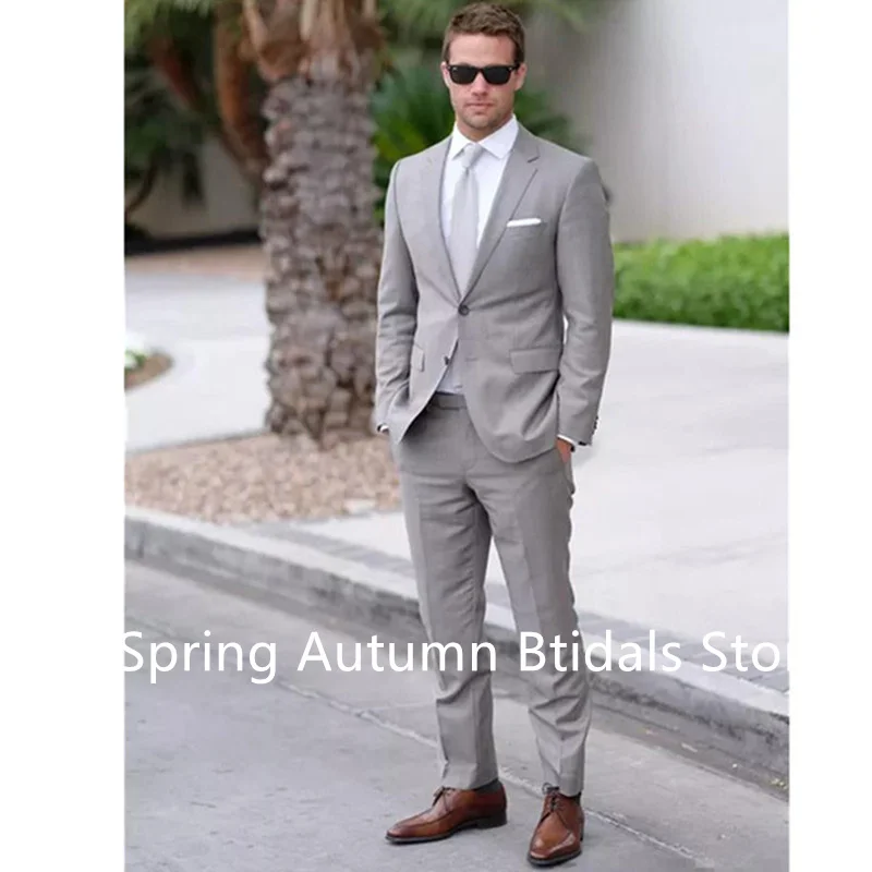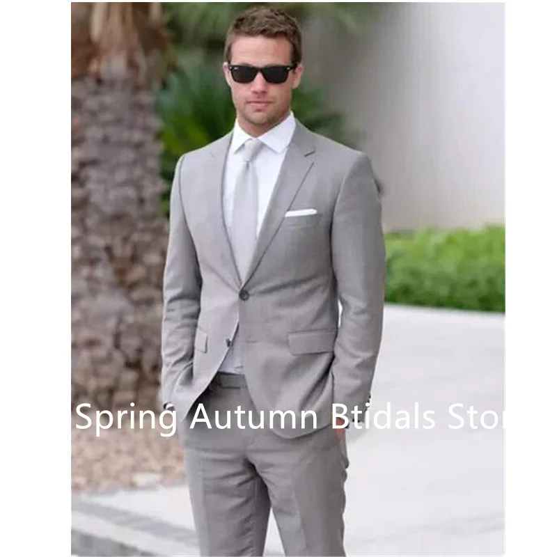 Светильник-серый костюм для жениха, Бракосочетание, мужской костюм, деловой мужской костюм для деловых встреч, свадебные костюмы, 2 предмета, пиджак + брюки