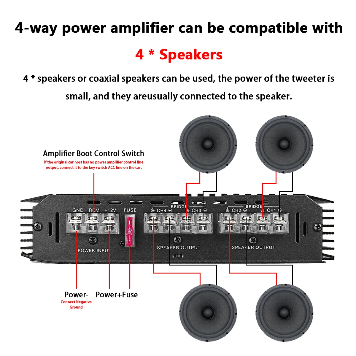 Автомобильный усилитель, обновленный 4-канальный усилитель мощности 6800 Вт с сабвуфером, тонкий 4-полосный басовый усилитель с сабвуфером, класс AB, автомобильный аудиоусилитель