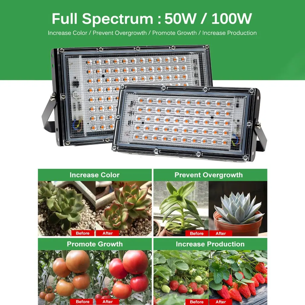 Светодиодная фитолампа полного спектра для выращивания растений, лампа для теплиц и гидропонных систем, 220 В переменного тока, 50 Вт, 100 Вт