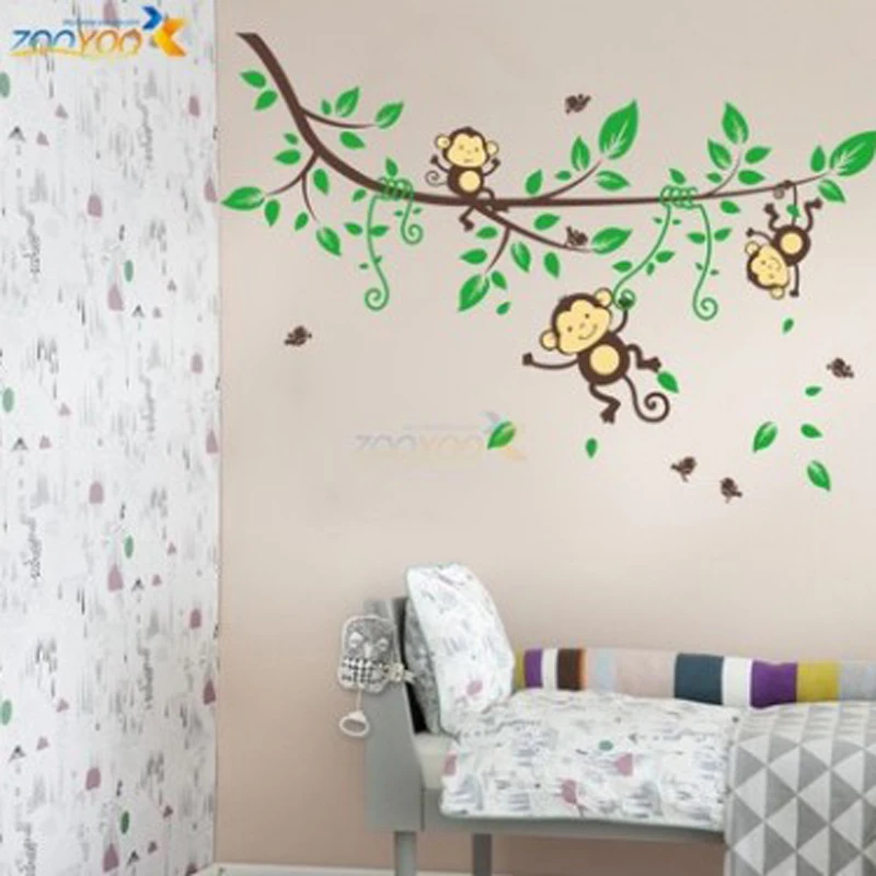 Наклейки для детских комнат, сова, обезьяна, животные, дерево, Муль...