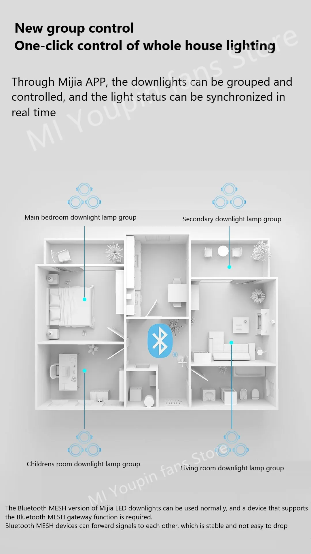 Через приложение Mijia, вниз светильник s можно сгруппировать и контролировать, и статус светильник может быть синхронизирован в режиме реального времени.