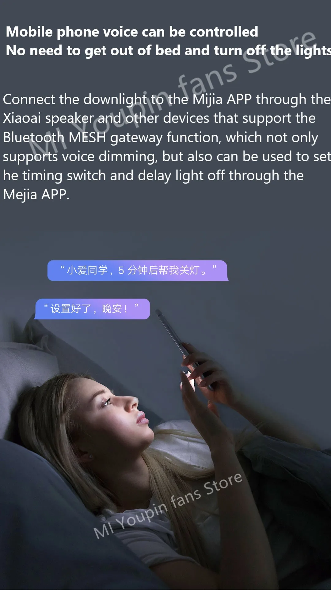 Подключите светильник к приложению Mijia через динамик Xiaoai и другие устройства, поддерживающие функцию шлюза с сеткой Bluetooth, и вы можете использовать приложение Mijia для установки переключателя синхронизации, отложите светильник и другие интимные настройки.