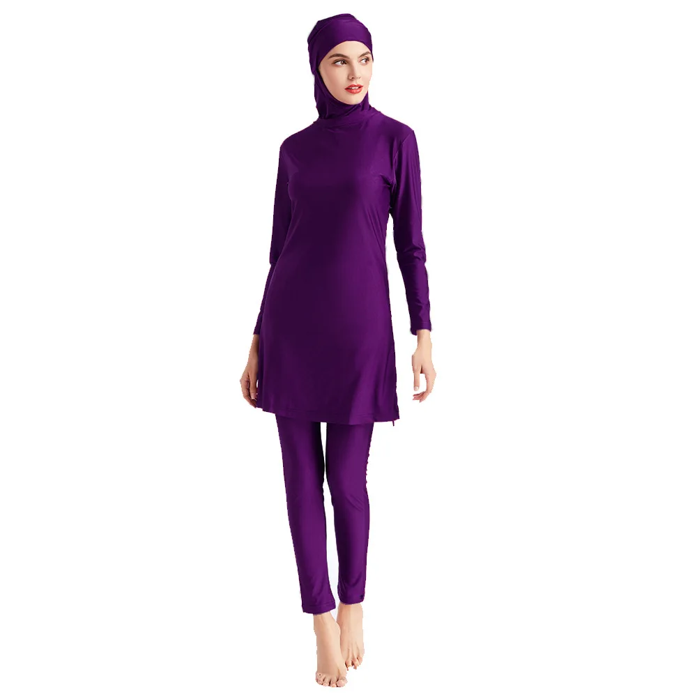 2022New скромный купальник из трех частей консервативный большой размер сплошной цвет мусульманские купальники для женщин Burkin