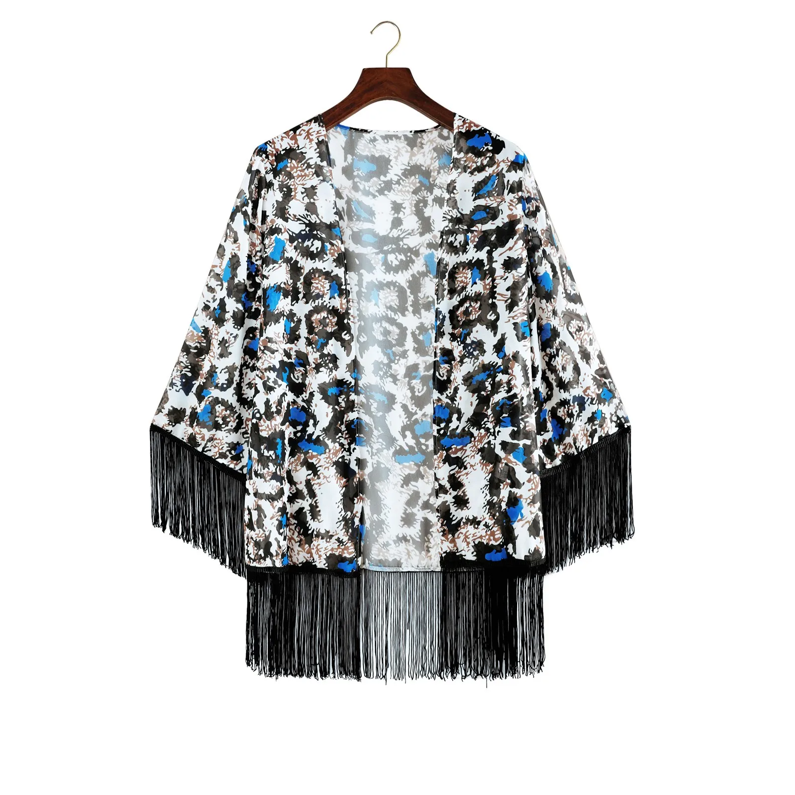 Женский шифоновый кардиган с большим свободным принтом, солнцезащитное пальто пляжные блузки, топы