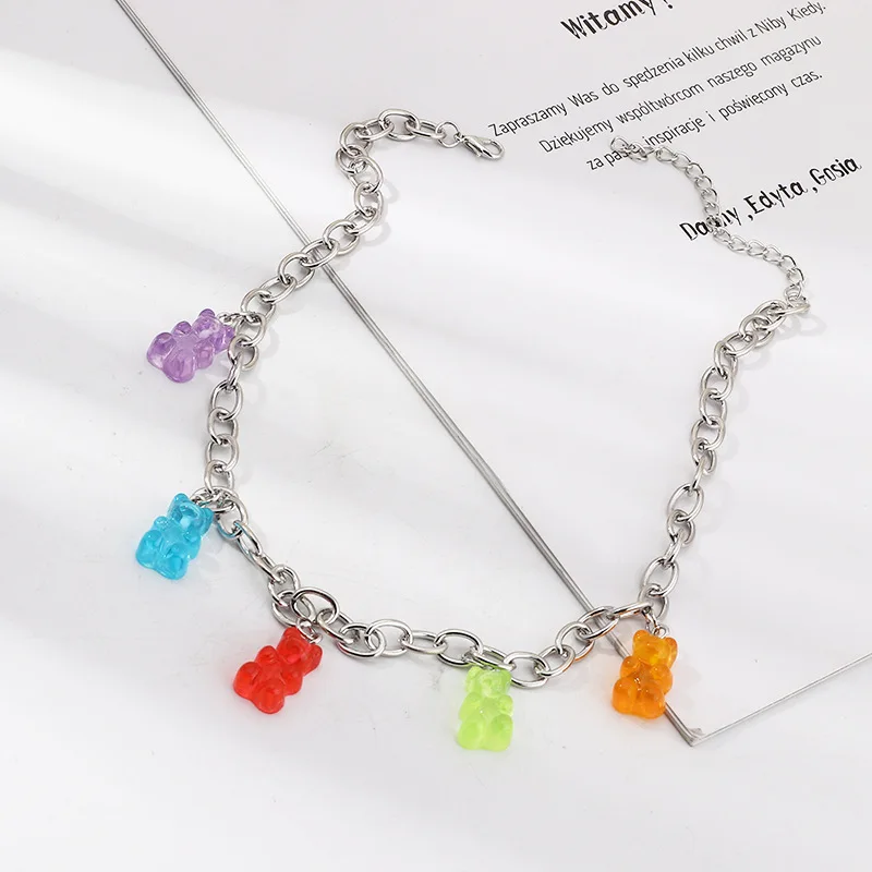 Женское клейкое ожерелье в стиле хип-хоп, изящное ожерелье радужного цвета с подвесками из смолы в стиле панк и девушек, ювелирные аксессуары