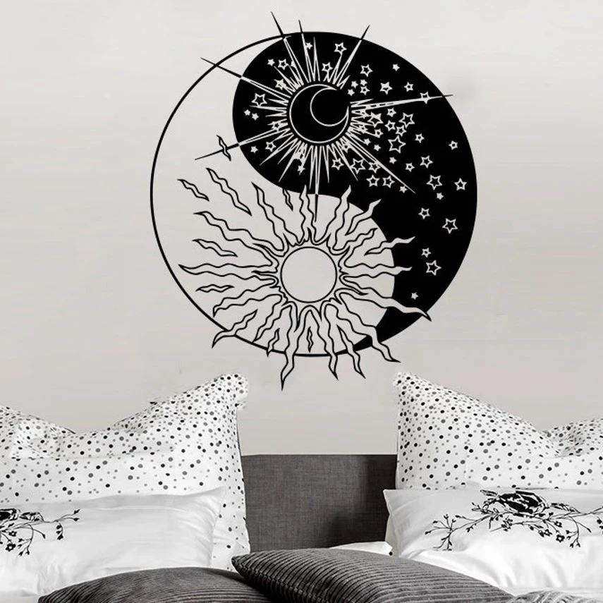 Наклейка на стену Инь Янь, виниловая двойная Этническая Наклейка на стену с изображением солнца, луны, солнца, звезды, йоги, полумесяца, ночного символа, украшение для дома и спальни