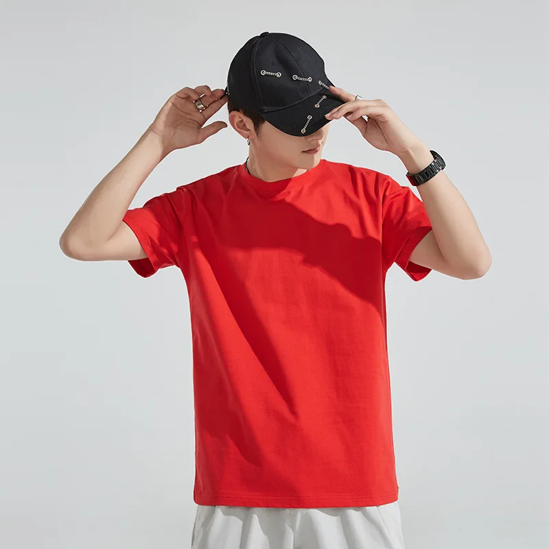 Футболка 240 г, однотонная хлопковая футболка с коротким рукавом, в стиле хип-хоп, топы унисекс в стиле Харадзюку, можно настроить значки