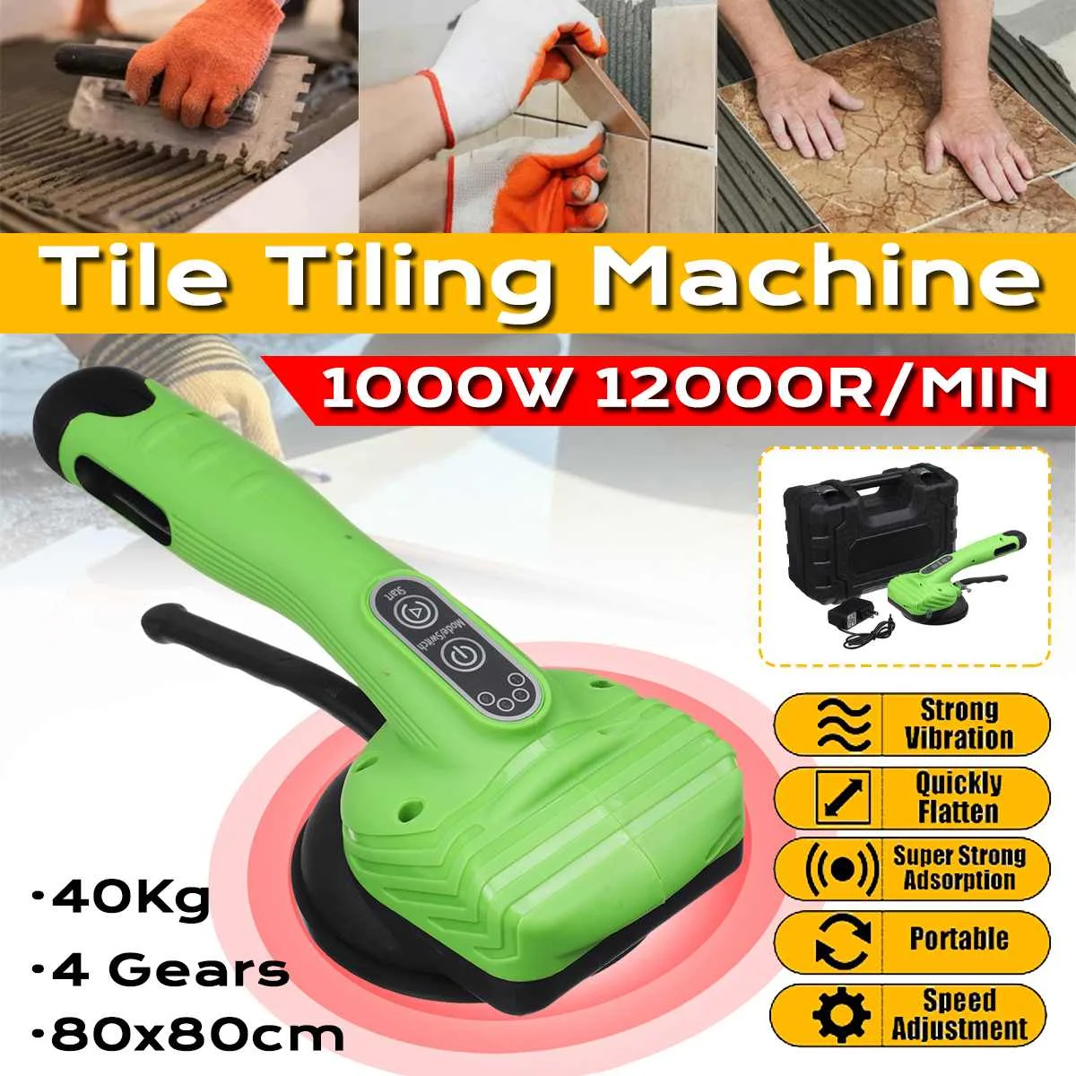 Особенности:-Скорость регулируется: одна кнопка вибрации, даже сила, может регулировать частоту вибрации в соответствии с размером кирпича.-Супер адсорбционная способность: утолщение и увеличение присоска, легко наклеивать плитку.-Кнопка блокировки: автоматически блокирует ручку, чтобы легко исправить положение плитки, удерживайте ручку, чтобы поглотить плитку и потяните ее назад, чтобы отрегулировать положение.-Управление одной рукой: стабильная и безопасная, делает вашу работу проще, подходит для инженерных команд, а также подходит для домашнего использования.-Срок службы батареи: встроенный съемный литиевый аккумулятор емкостью 3000 мАч, быстрая зарядка, длительный срок службы батареи.-Широкое Применение: подходит для движения и установки настенной плитки и небольшой напольной плитки, что значительно повышает эффективность работы.-Портативный и удобный: Он имеет прочную внешнюю упаковочную коробку, которая содержит плитку, зарядное устройство.