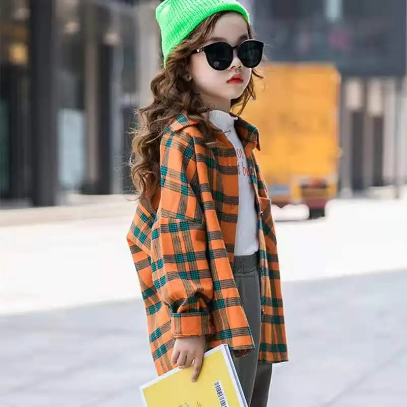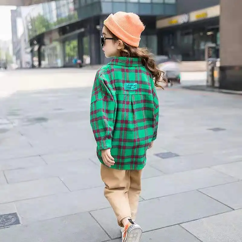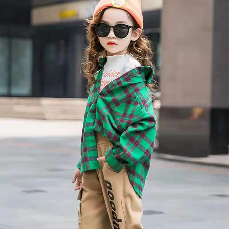 Рубашка в клетку для девочек, одежда для девочек на весну 2022, рубашки для девочек-подростков, блузка для девочек, детская клетчатая блузка, детская одежда