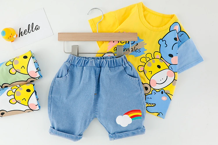 HYLKIDHUOSE комплекты одежды для мальчиков летняя детская повседневная одежда футболка с короткими рукавами и рисунком для малышей джинсовые шорты