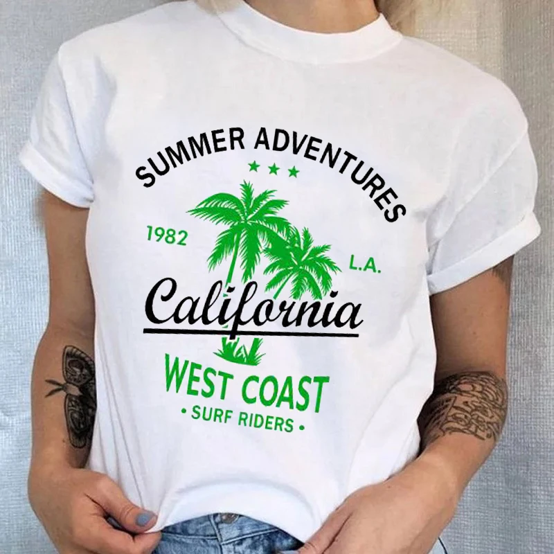 Летние Приключения Tshir Повседневная Свободная футболка Лучшие серфинг Санта-Моника California Женские Ретро Стиль футболка пляжный отдых рубашка