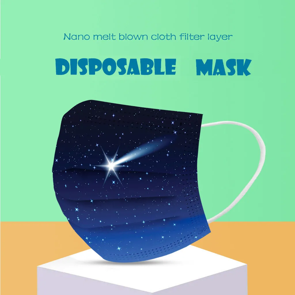 В 3 слоя Нетканая одноразовая маска изготовлена из 3 слоев нетканого материала, Безопасен и безопасен для использования. Дышащий материал и милый Узоры, которые делают его полезным и модным. Специальный 3 слоя из нетканого материала Дизайн, обеспечивает некоторую защиту от пыли, автомобильных выхлопных газов, Пыльца и т. д. эластичная Ушная петля, легко носить и не давит на уши. Маникюрный салон или любые другие области, где может потребоваться защита