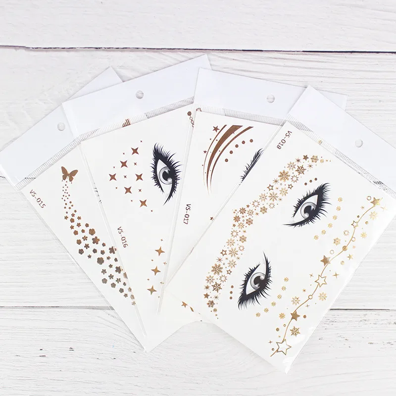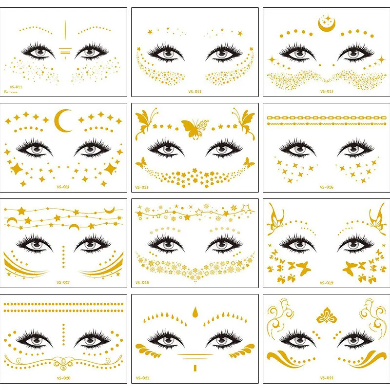 Новая Золотая временная татуировка для лица, водонепроницаемые накл...