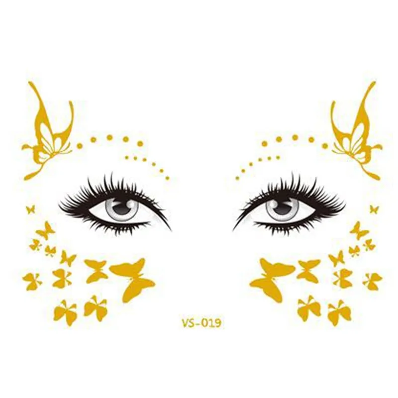 Золотистая временная татуировка для лица, водостойкие веснушки, наклейки для макияжа, наклейки для глаз, оптовая продажа, 2021, новые наклейки с бабочками