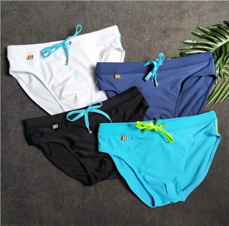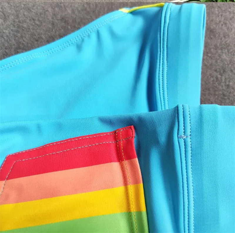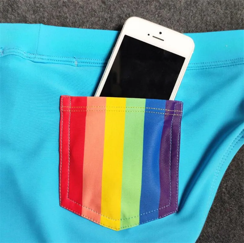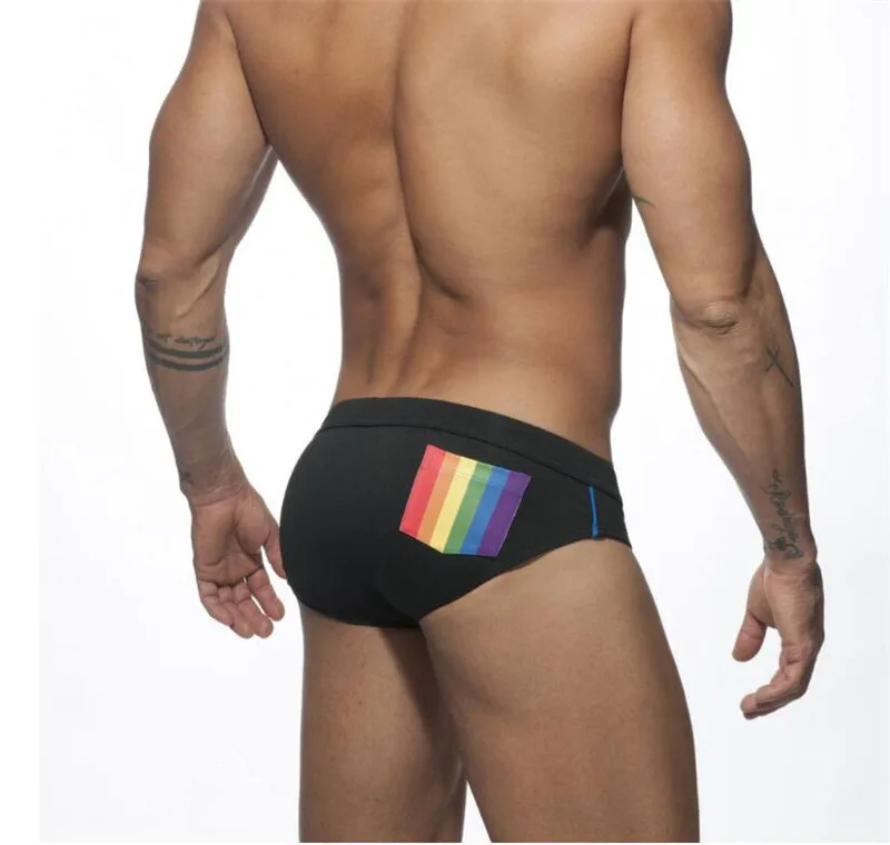 Купальник мужской с заниженной талией, пикантный купальный костюм, пляжная одежда, модные радужные шорты, спортивные плавки