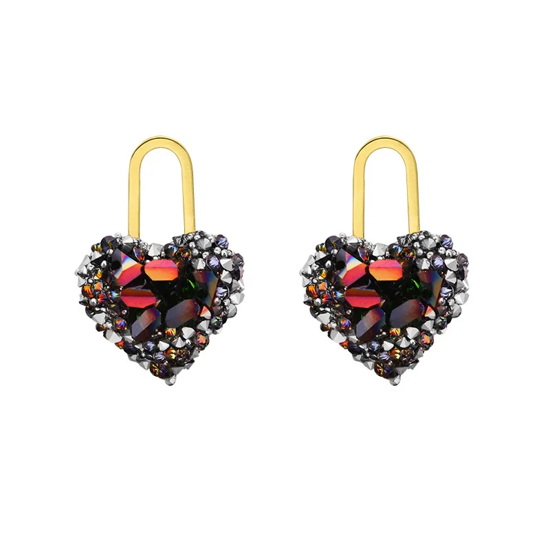 Классические модные черные серьги-гвоздики в форме сердца с кристал...
