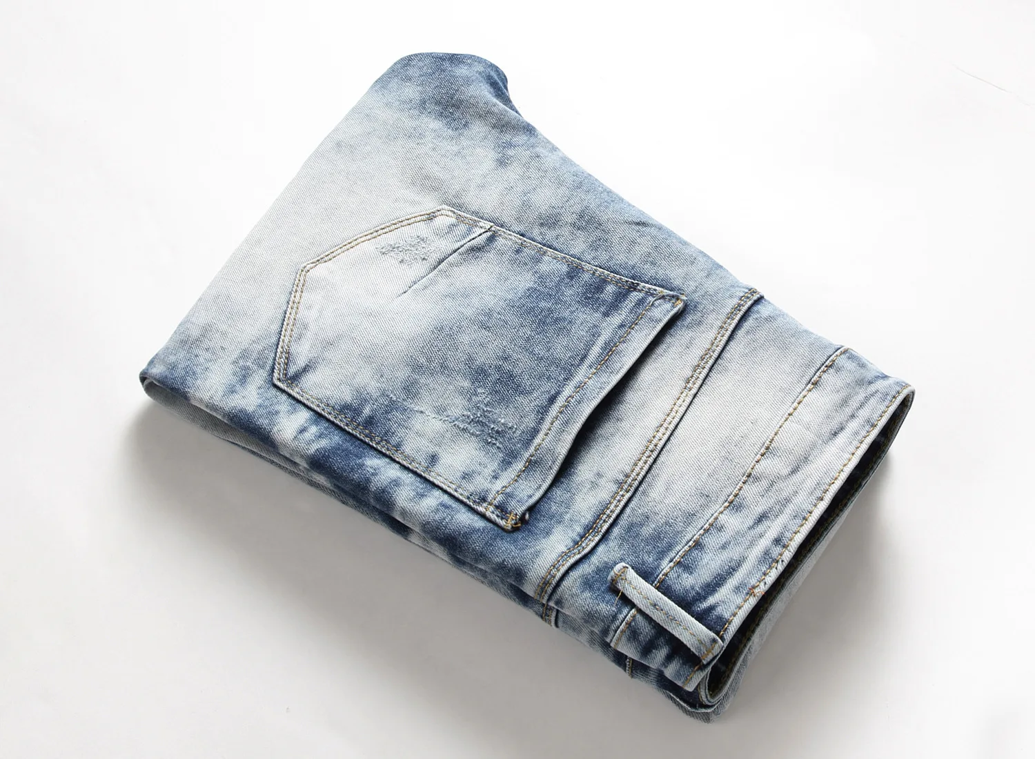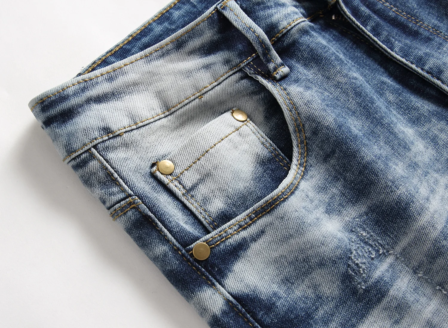 Джинсовые дизайнерские байкерские джинсы высокого качества для мужч...