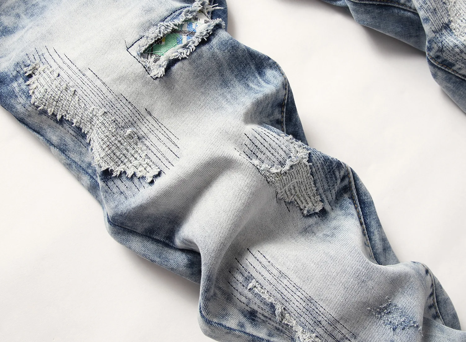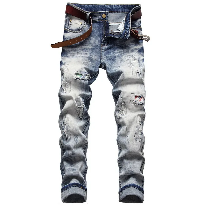 Мужские рваные джинсы стрейч составного кроя с вышивкой, модные пря...