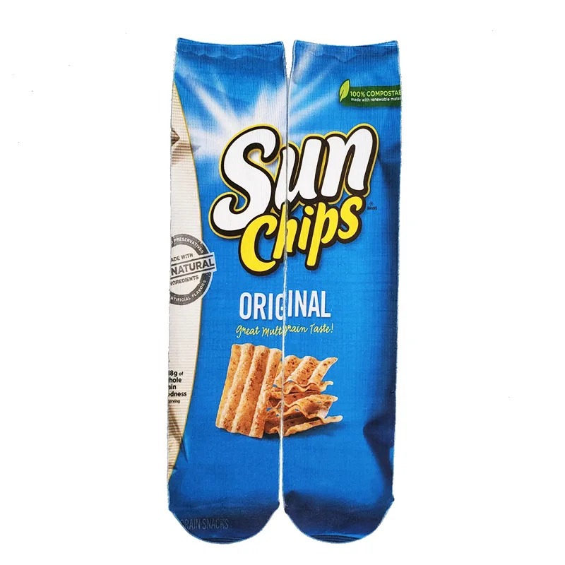 Смешные носки Харадзюку Еда линия производства картофельных чипсовГ...