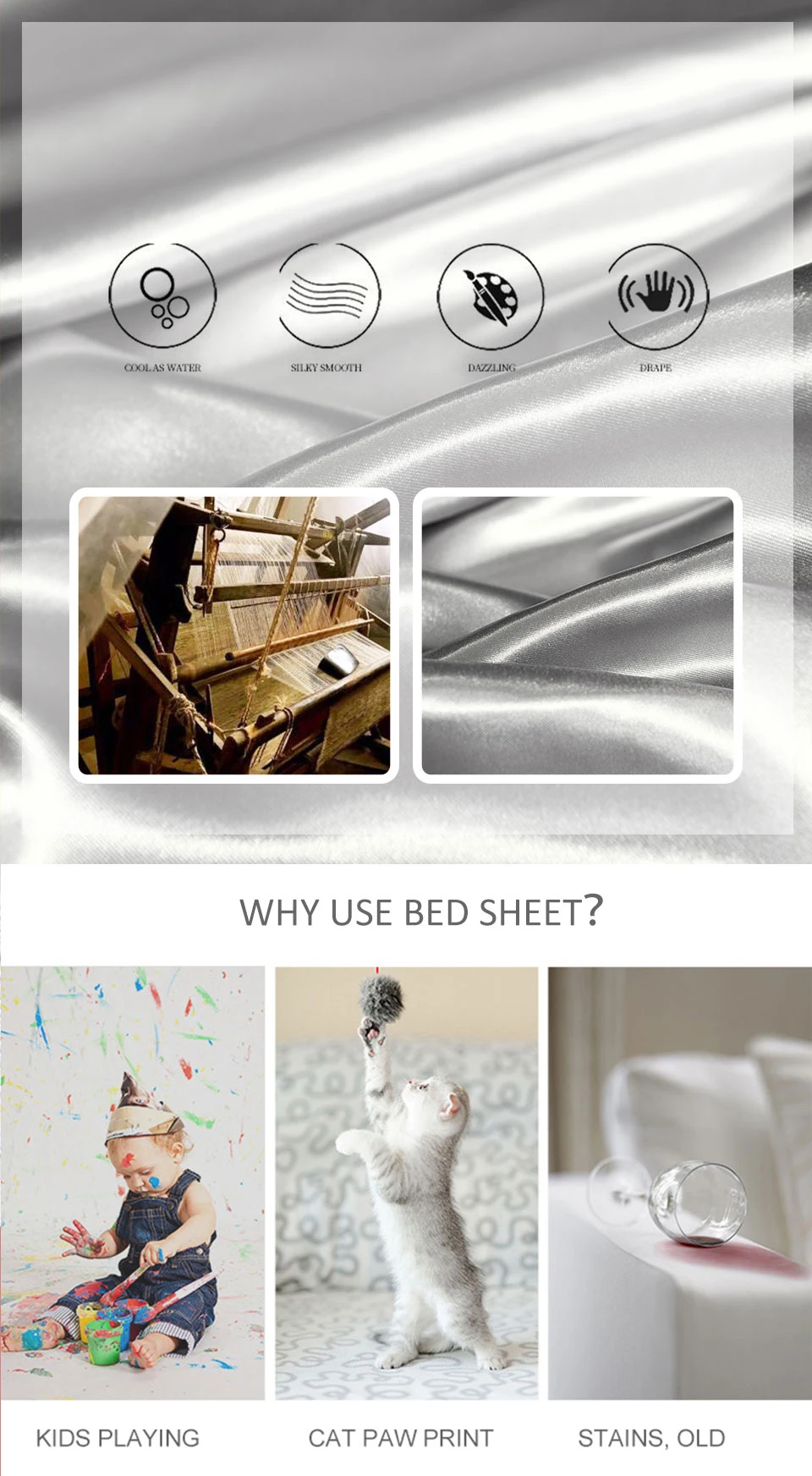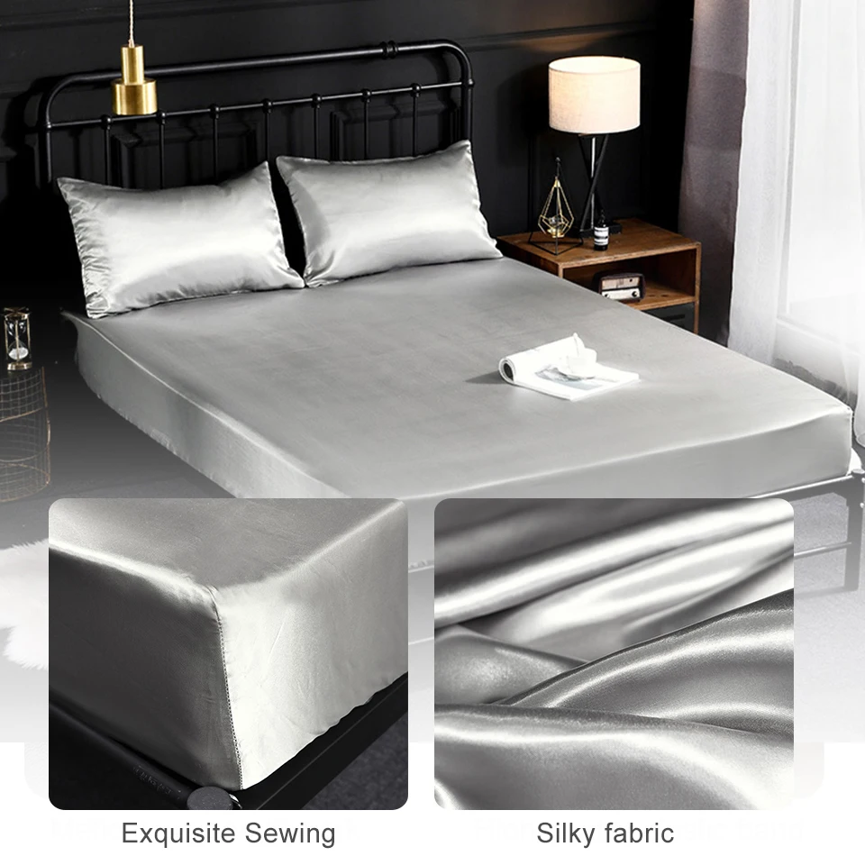 Атласная шелковая натяжная простыня, высококачественный однотонный ...