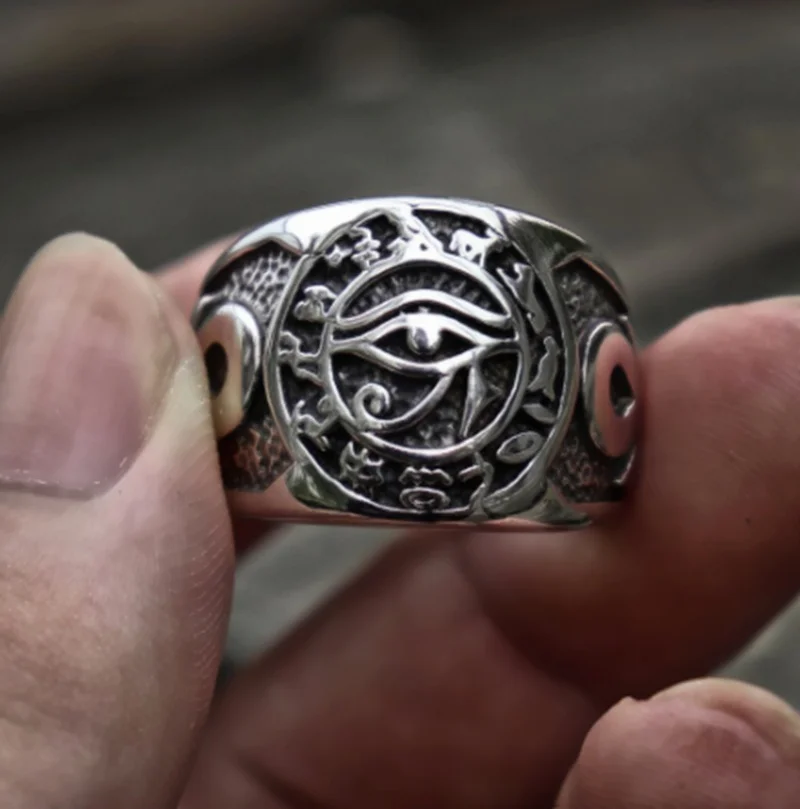 Мужское кольцо Juno, с египетским фараоновым глазом, амулетом хора, мотоциклистом, серебряное кольцо с крестом, египетское кольцо