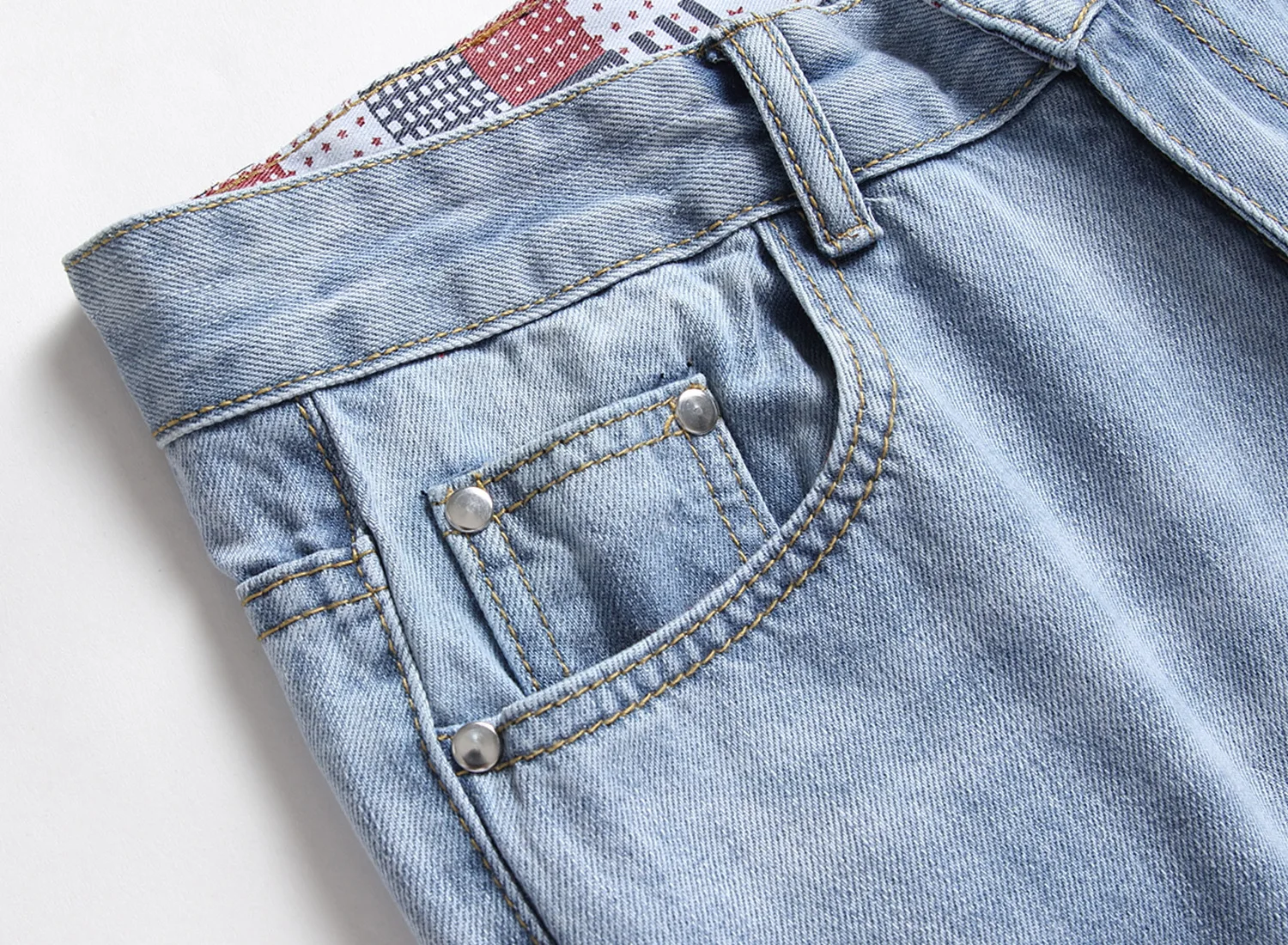 Мужские рваные джинсы стрейч составного кроя с вышивкой, модные пря...