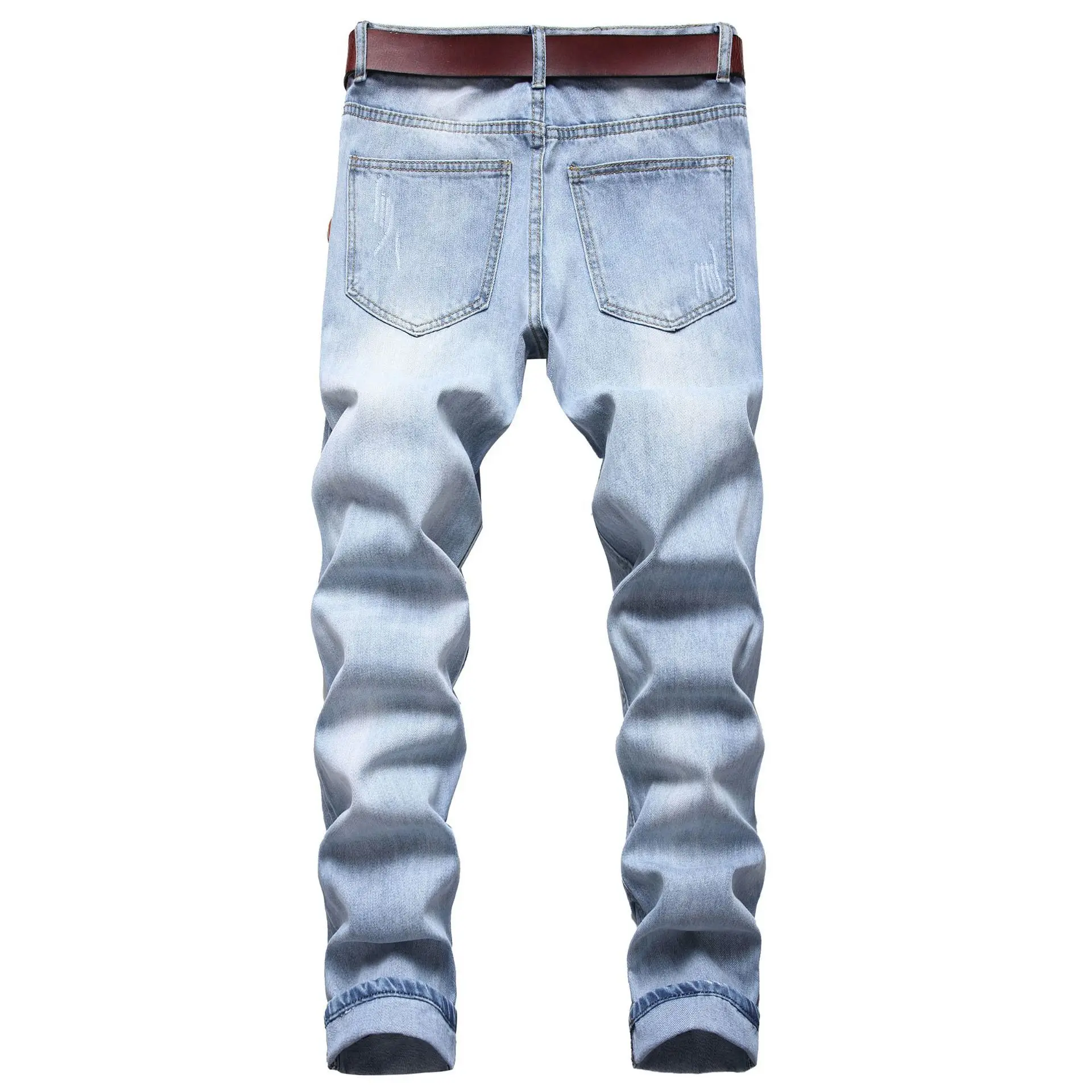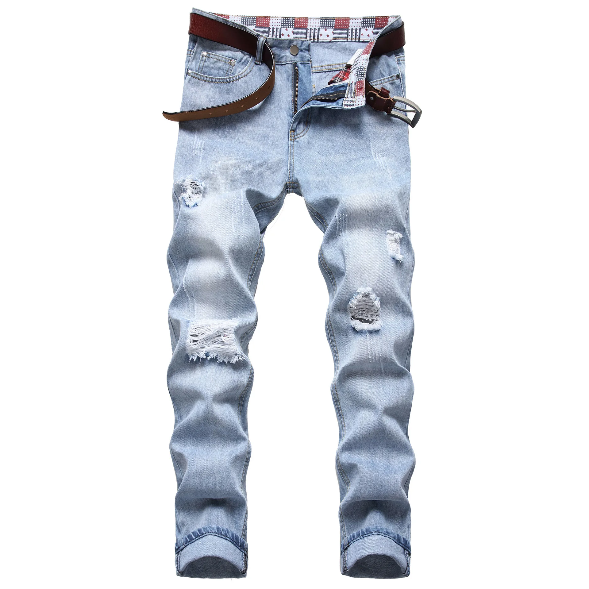 2022 осень весна мужские рваные уличные хип-хоп панк стрейч джинсы для велосипеда трендовые рваные прямые джинсовые брюки
