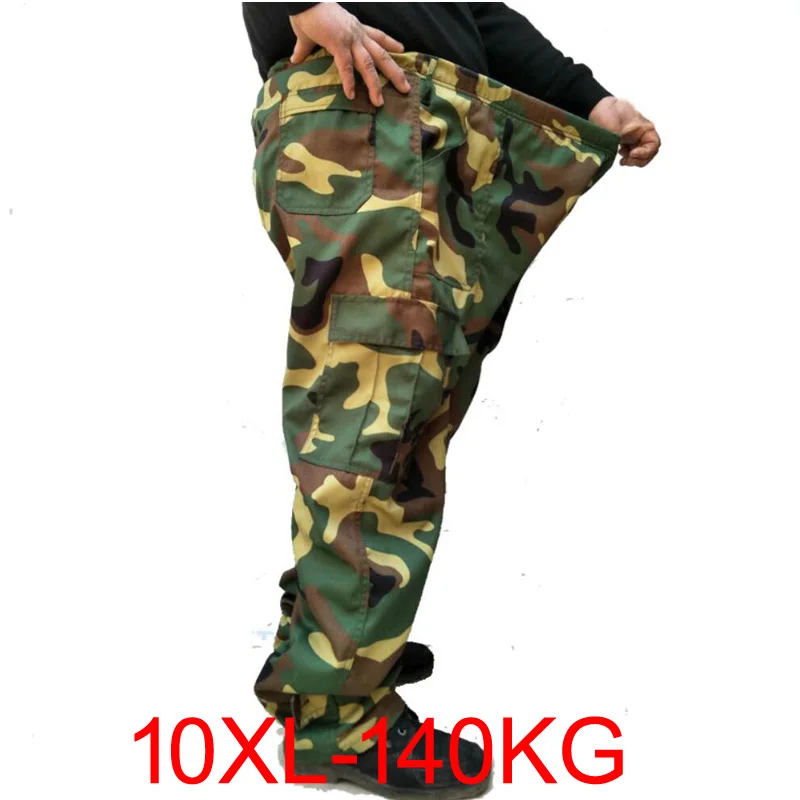 Летнее платье размера плюс 9XL 10XL Мужские Брюки карго с эластичной резинкой на талии большие размеры 8XL камуфляж Армейский зеленый дома и на открытом воздухе 140 кг Стиль рабочие брюки