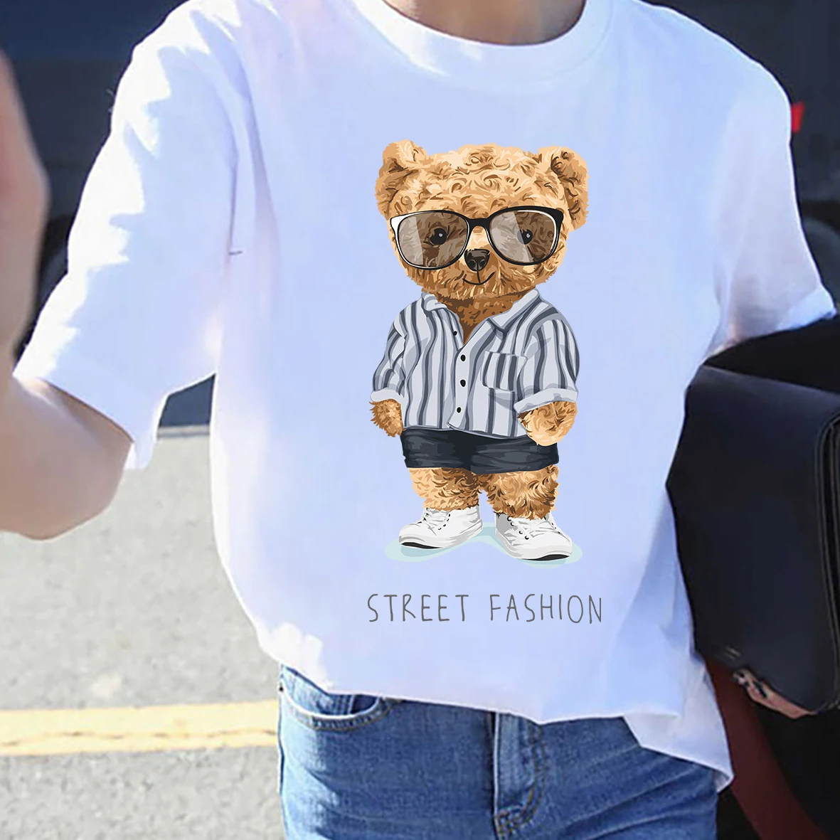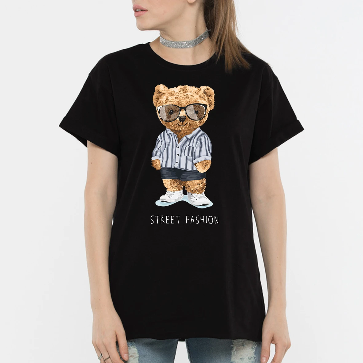 Футболка BLINGPWA женская, 100% хлопок, Модный повседневный топ с принтом мишки тедди, уличная мода