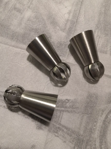 Очень ждала эти насадки так и хочется поскорее их попробовать в деле! Наборчик интересный, на вид изготовлены качественно, металл местами с пятнышками, но думаю, это не страшно. Упакованы насадки были в пакетик прозрачный, запаха и повреждений нет, всё как на фото продавца. Заказом довольна, буду заказывать ещё