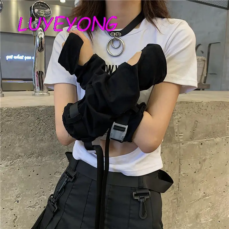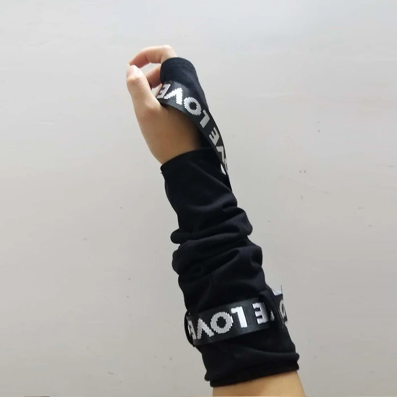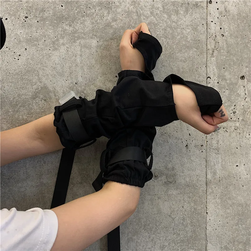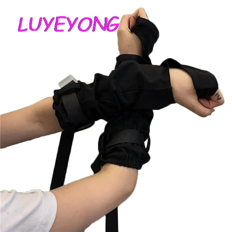 Крутые черные панк унисекс перчатки без пальцев регулируемые манжеты с пластиковой пряжкой ниндзя Локоть Длина готические варежки леди рука теплее