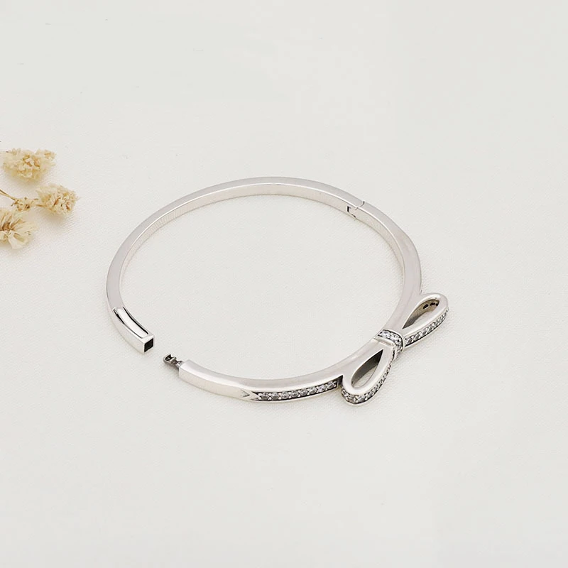 Открытый браслет из серебра 925 пробы с бантом, подходящий оригинальный Шарм для женщин, ювелирные изделия для самостоятельного изготовления браслетов S925