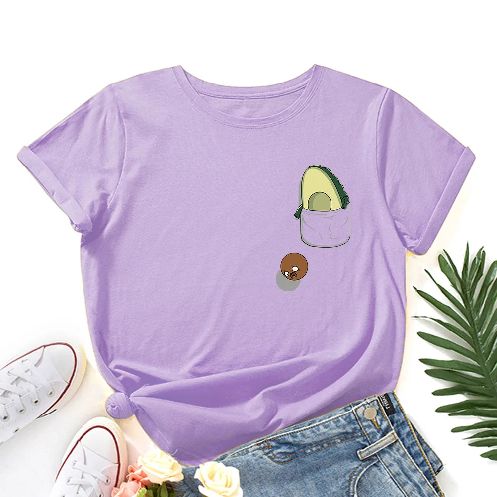 Женская футболка JFUNCY размера плюс, летняя хлопковая футболка с коротким рукавом, забавные Женские топы с принтом авокадо, Женская Повседневная футболка большого размера